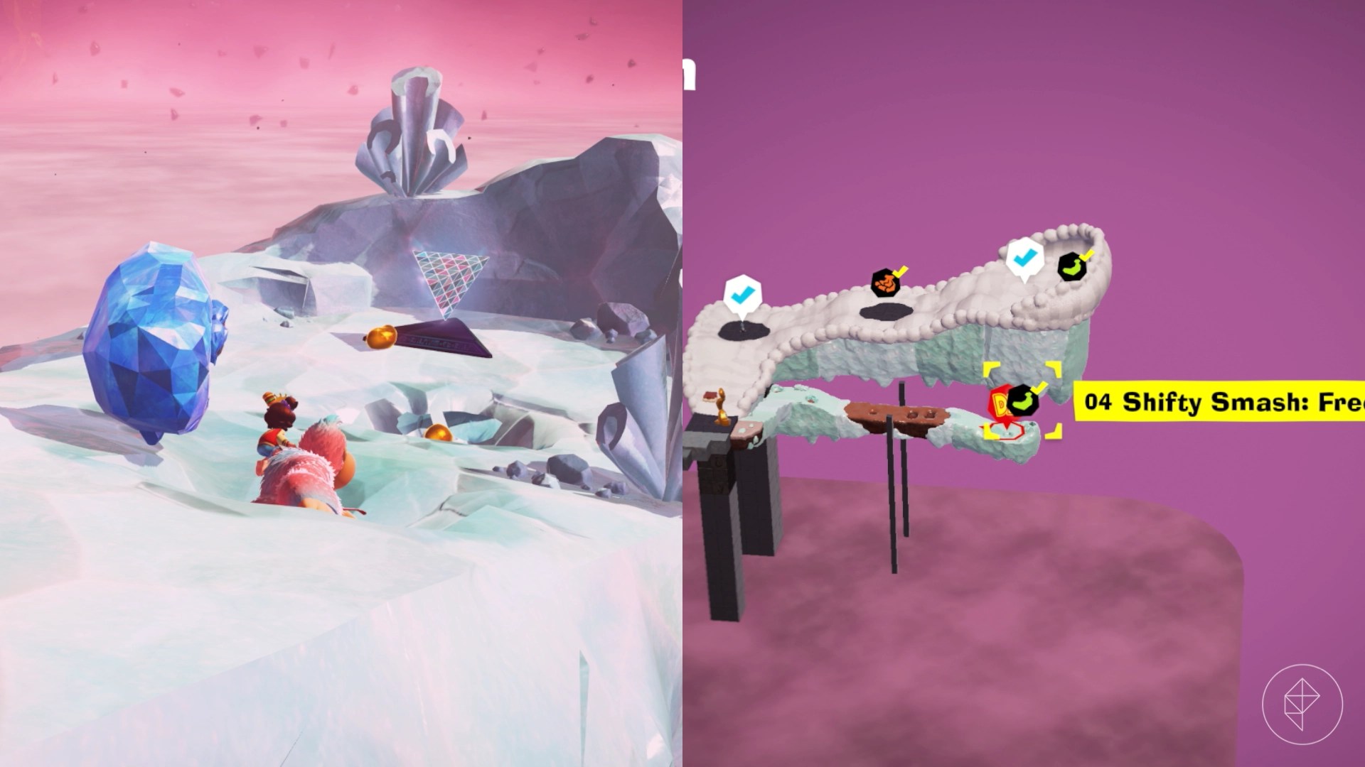 Po ukończeniu Freezer Layer idź do urządzenia void i je rozbij. Następnie wróć ścieżką, gdzie zobaczysz betonową ścianę po przeciwnej stronie – zniszcz ją lub pozwól działkom to zrobić, by zdobyć ukryty gem.