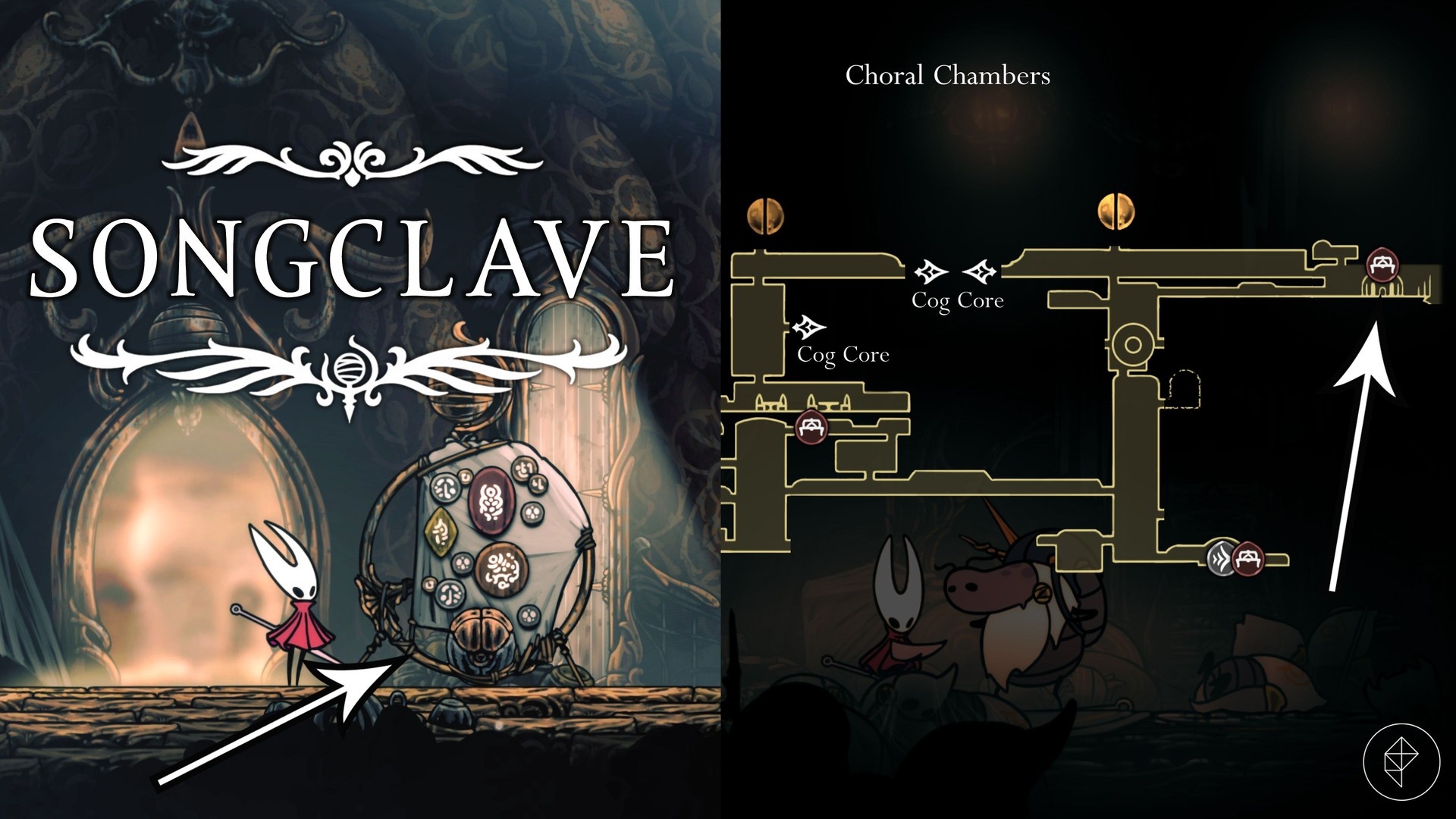 Jeśli startujesz z First Shrine, zejdź dolną drogą w lewo. Przejdziesz przez drzwi ze switchami i przez komnaty z parą. Gdy dojdziesz do dużej sali — spuść się na dół.