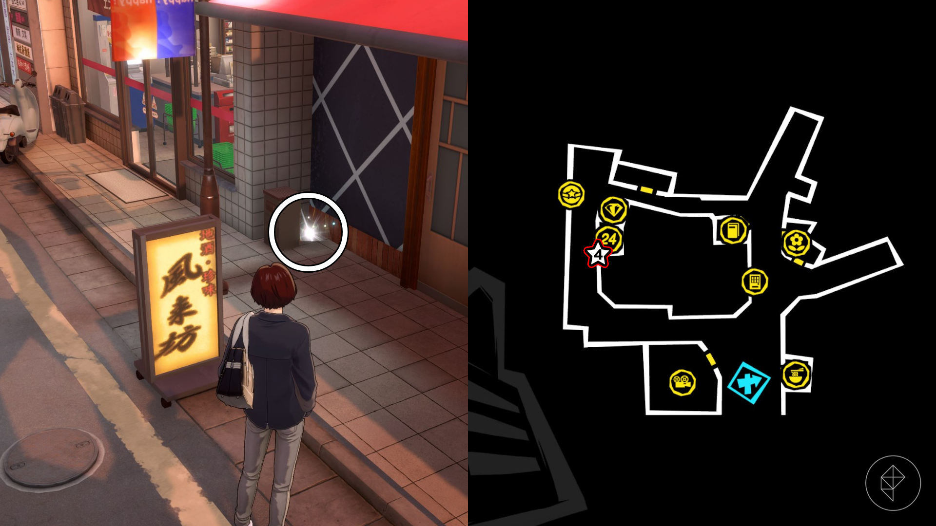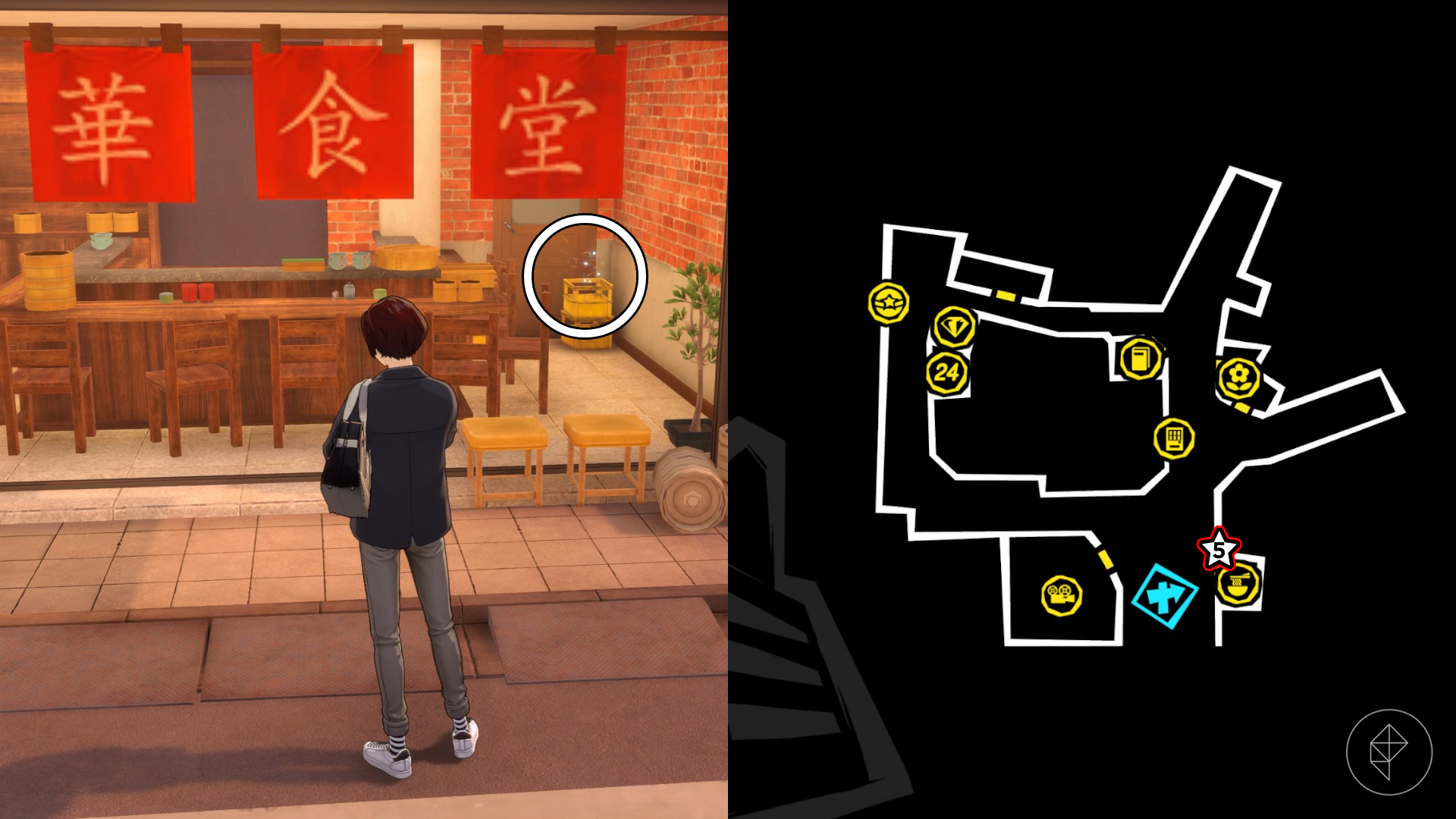 Piąty skarb czeka na Ciebie w żółtej skrzynce, wewnątrz izakayi. Lokal znajduje się na północ od sklepu z ramenem w południowo-wschodnim rogu mapy. Wejdź do izakayi, by zgarnąć nagrodę.