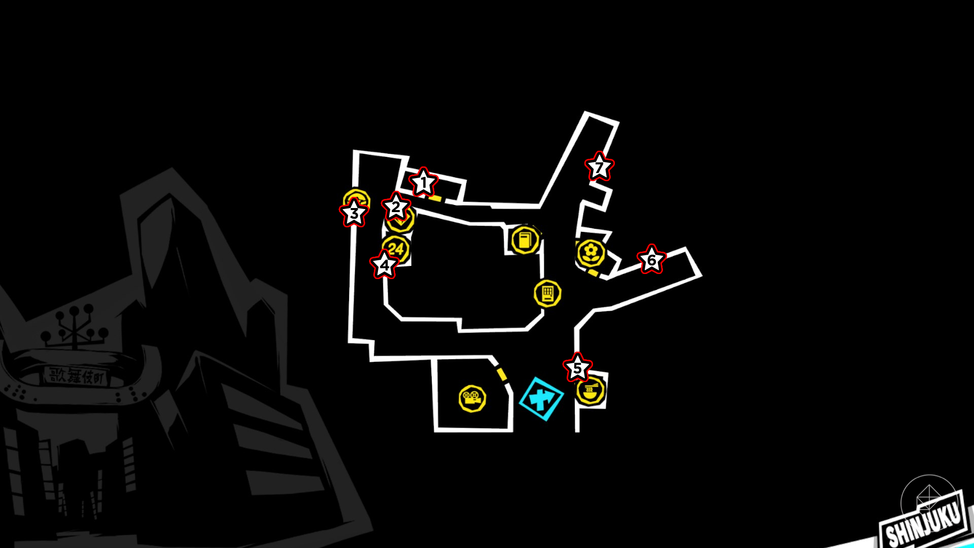 W trakcie questa „Treasure Tail: Shinjuku” musisz pomóc Orange Tabby Cat znaleźć 7 ukrytych skarbów. Każdy z nich jest schowany w innym miejscu na mapie, dlatego warto zwracać uwagę na każdy zakamarek i sklepik. Żeby było łatwiej, poniżej znajdziesz dokładny opis wszystkich lokalizacji wraz z mapką: