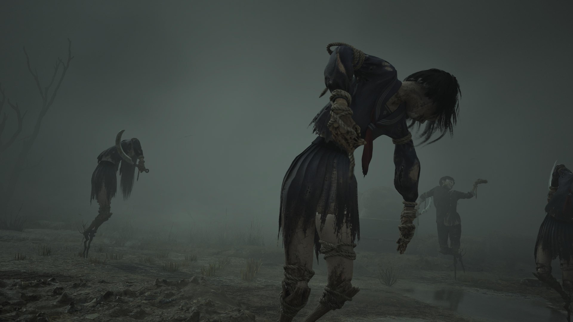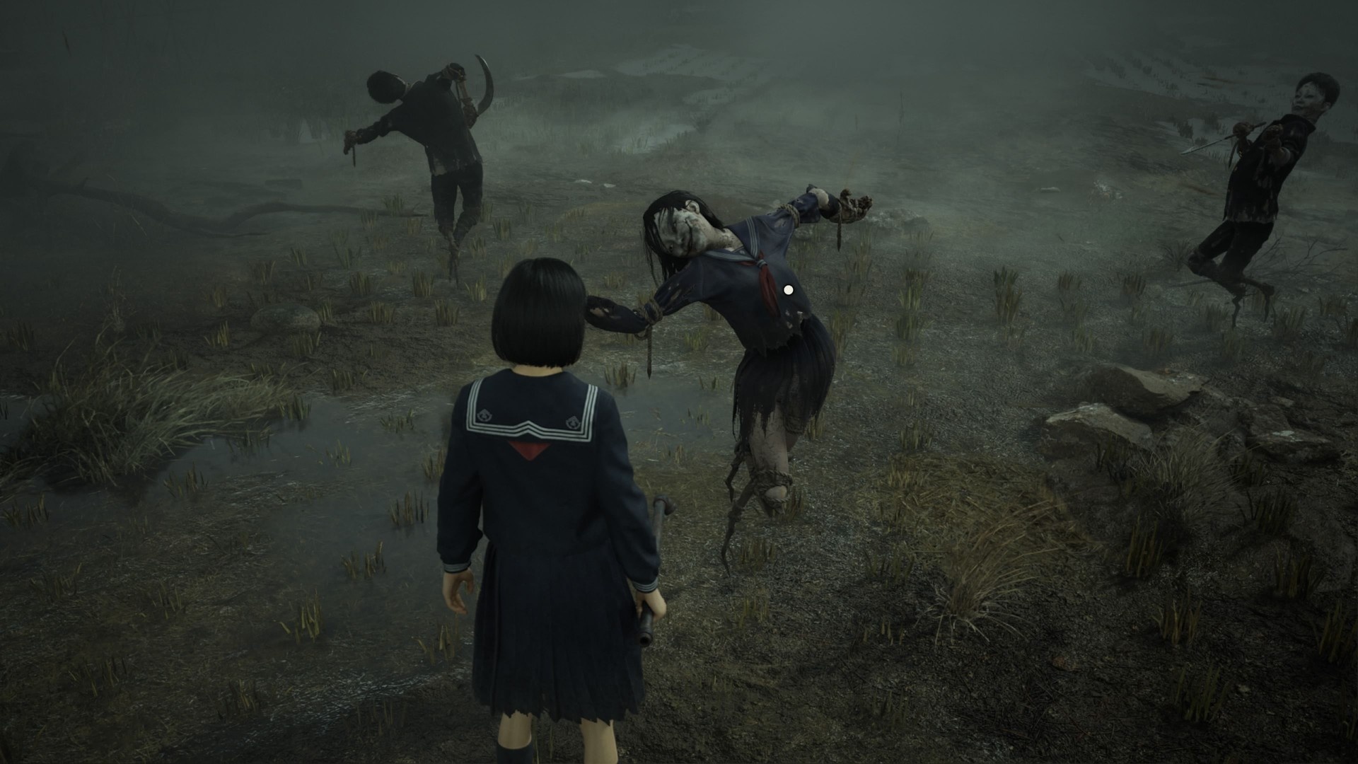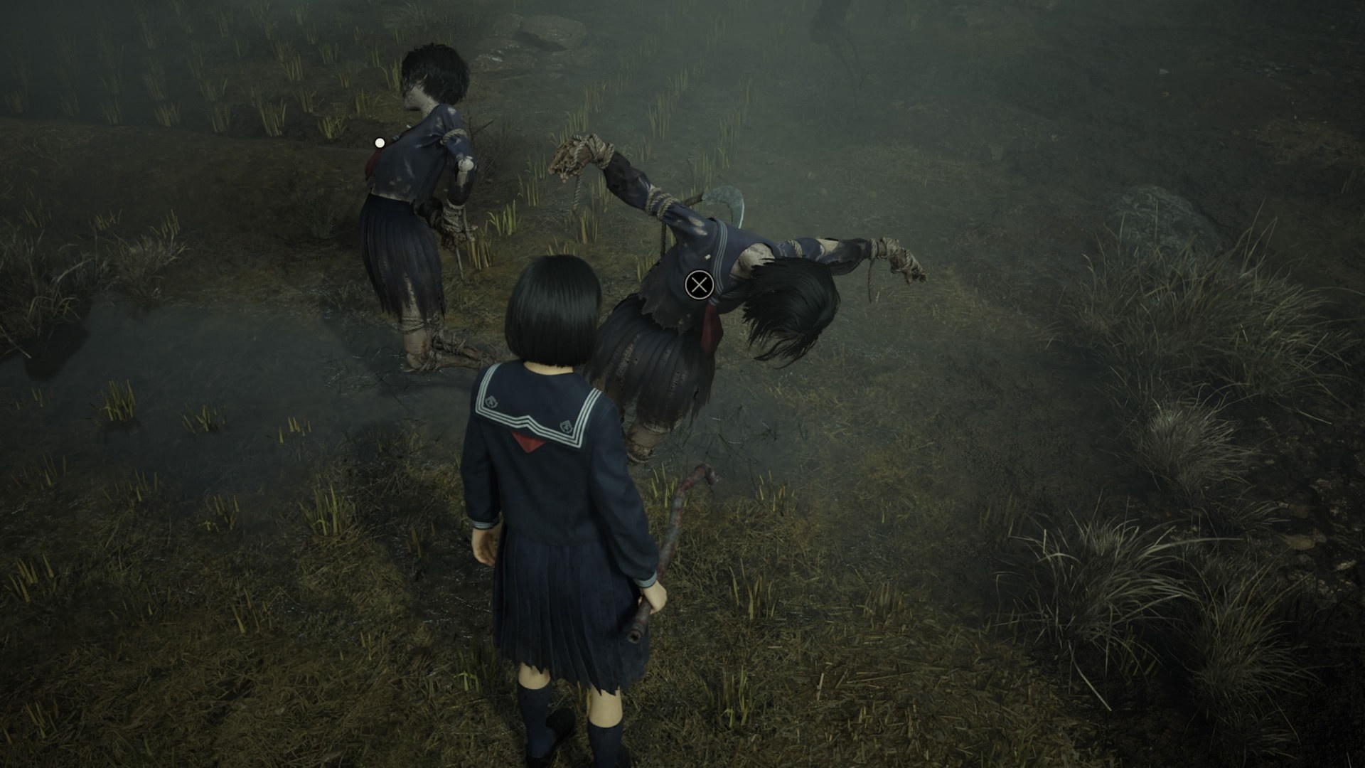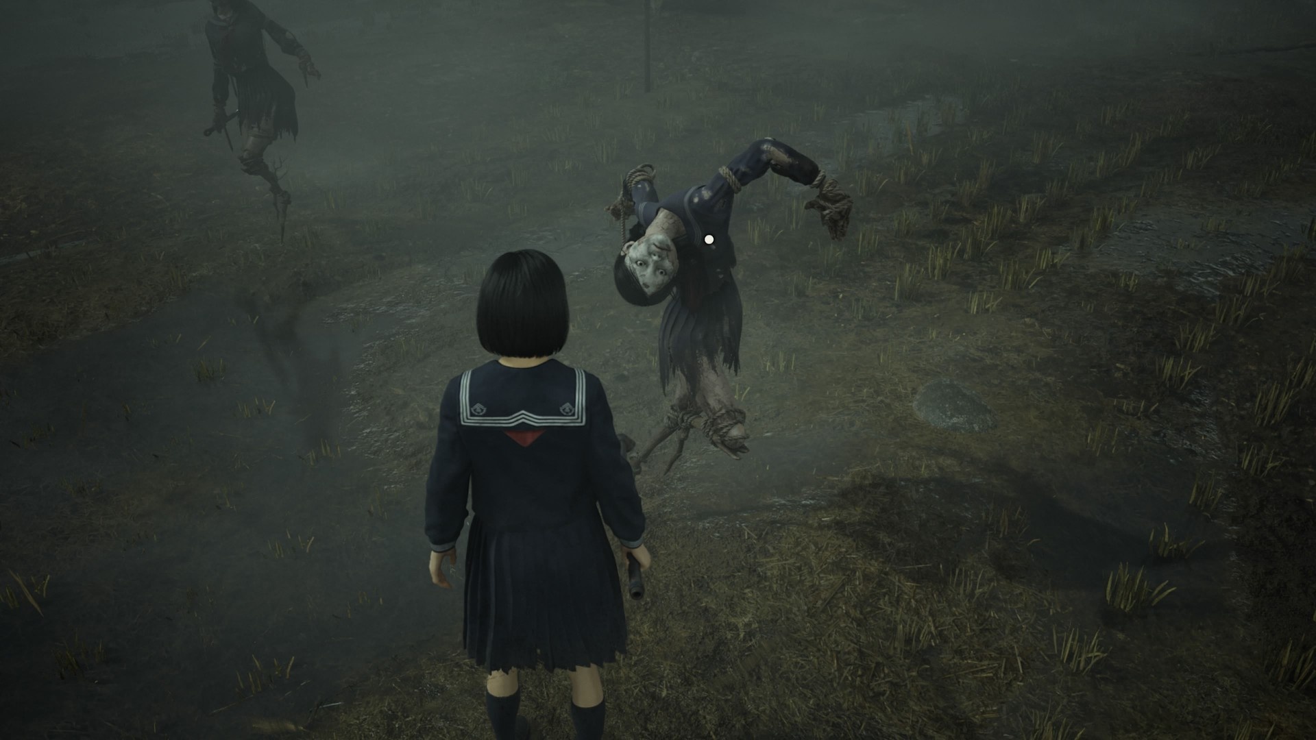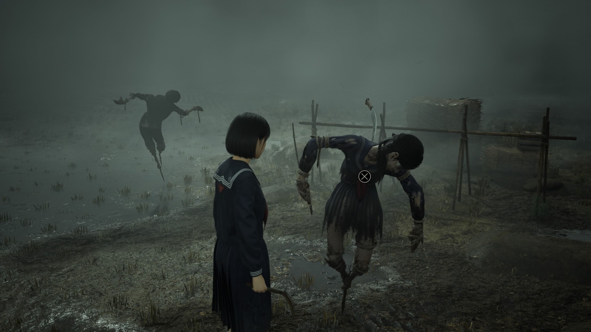Hinako trafia na pole pełne strachów na wróble, które występują w grupach. W każdej grupie jeden strach ma notatkę — to wskazówka. Ponadto ten sam pierwszy strach daje kosę jako broń. Jednak kosa szybko się psuje, więc nie polegaj na niej za bardzo, chyba że masz zestaw narzędzi.