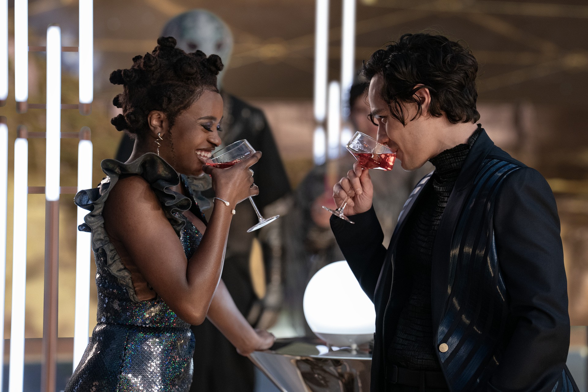La’An, grana przez Christinę Chong, dostaje w tym sezonie jeszcze więcej czasu antenowego. W czwartym odcinku, “A Space Adventure”, testuje pierwszy holodeck Starfleet w historii i rozwiązuje zagadkę w stylu Knives Out z domieszką Galaxy Quest. Za kamerą stanął Jonathan Frakes, a scenariusz napisała ekipa odpowiedzialna m.in. za musicalowy hit “Subspace Rhapsody”. To świetna okazja, by zobaczyć aktorów w nowym, nieco żartobliwym wydaniu.