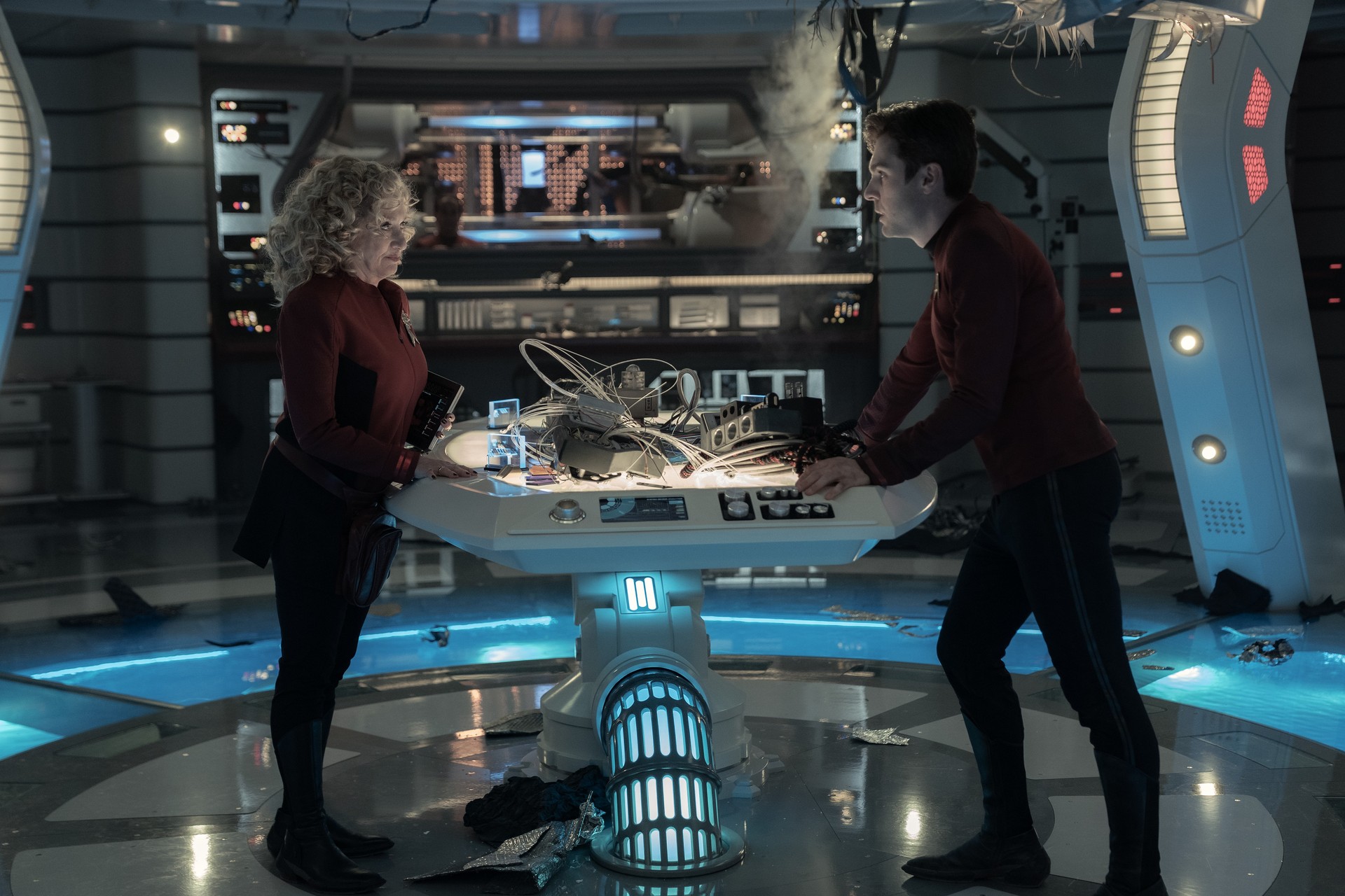 W Strange New Worlds już od początku widzimy takie postacie jak Christine Chapel (Jess Bush), Spocka (Ethan Peck) czy Nyotę Uhura (Celia Rose Gooding). Kapitan James T. Kirk (Paul Wesley) pojawia się okazjonalnie, a inżynier Montgomery Scott (Martin Quinn) dołączył do głównej obsady w trzecim sezonie, który startuje 17 lipca. Jednak wciąż czekamy na pojawienie się doktora Leonarda McCoya, starszego sternika Hikaru Sulu czy pomocniczki Janice Rand.