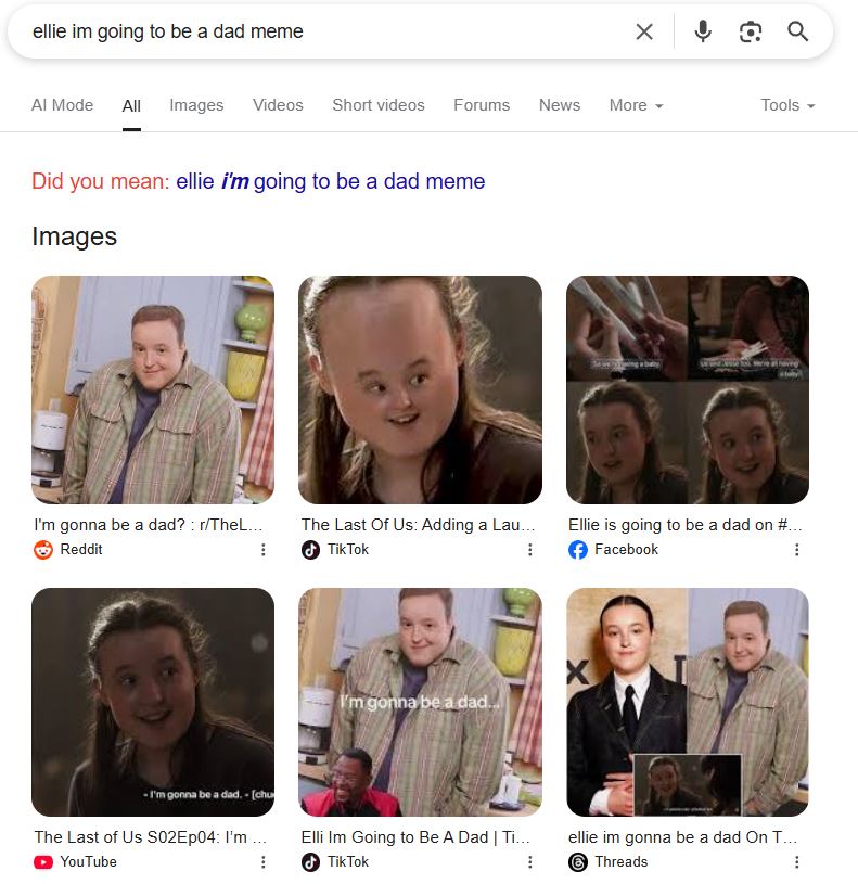 Niestety, widzowie nie byli już tak zachwyceni. Słynny tekst szybko stał się memem, a fraza „ellie im going to be a dad meme” zaczęła królować w wyszukiwarkach i na forach. Fani z humorem przerabiali scenę, pokazując zniekształconą twarz Belli Ramsey w różnych wariacjach nawiązujących do tej kwestii.