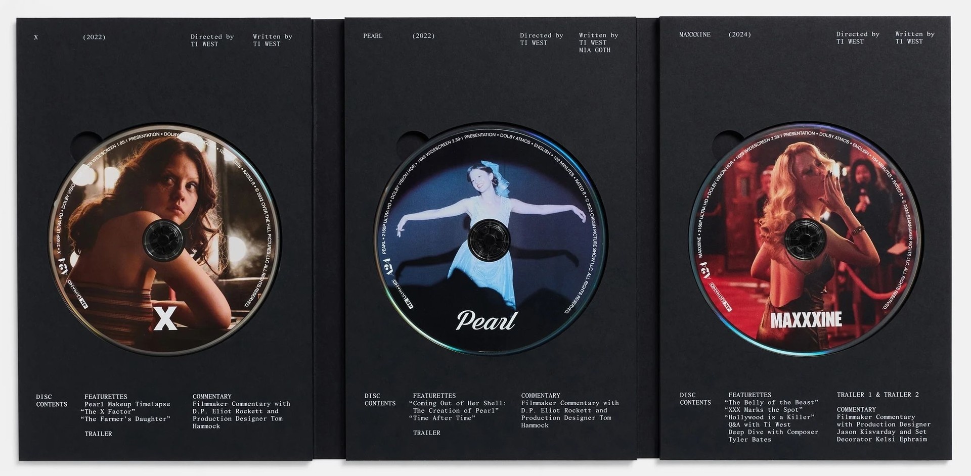 A24 udostępniło możliwość przedsprzedaży limitowanej edycji kolekcjonerskiej trylogii Ti Westa — X, Pearl i MaXXXine — w formatach Blu-ray i 4K UHD. Cena zestawu to 100 USD, a wysyłki mają się rozpocząć w październiku.