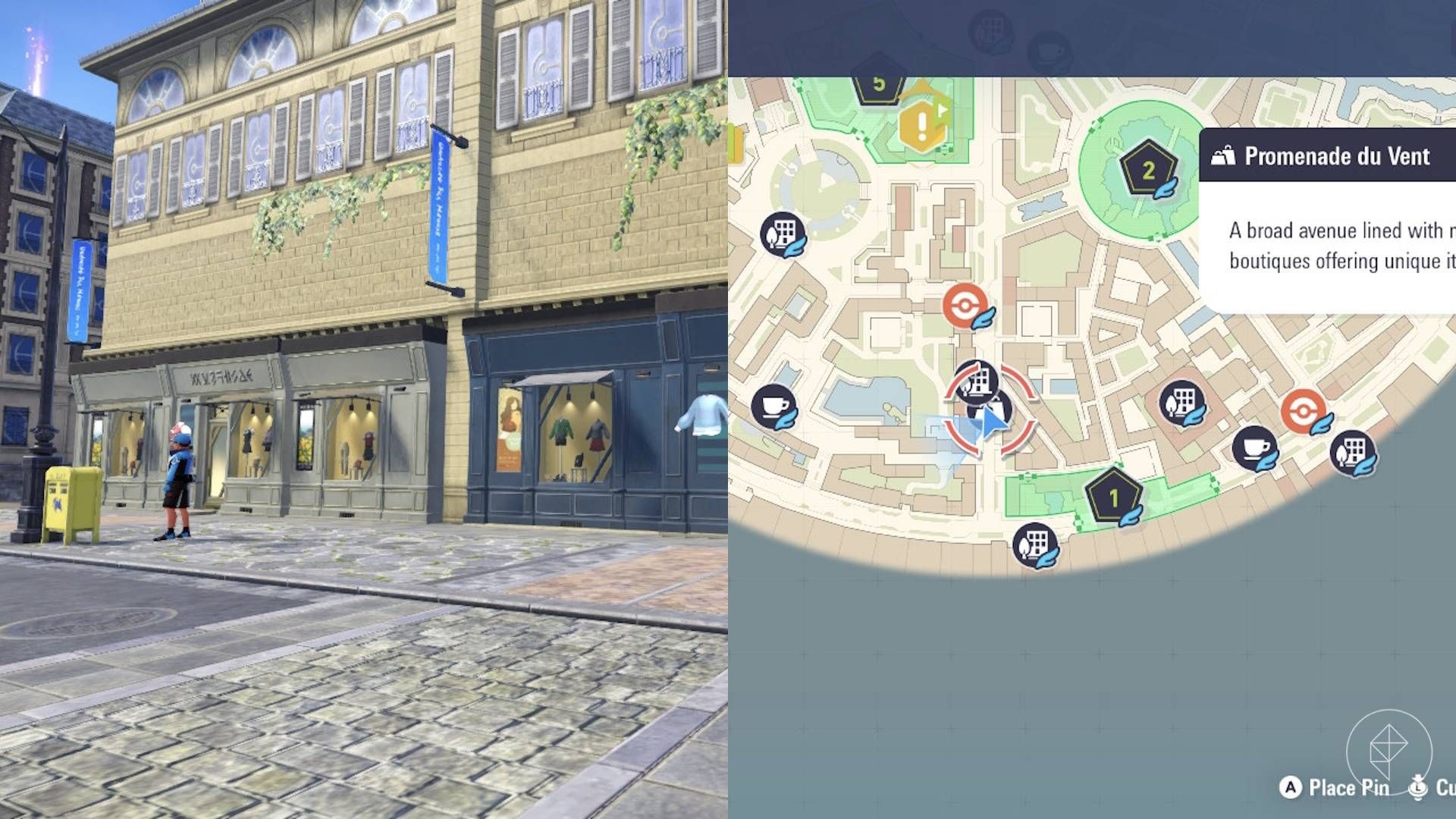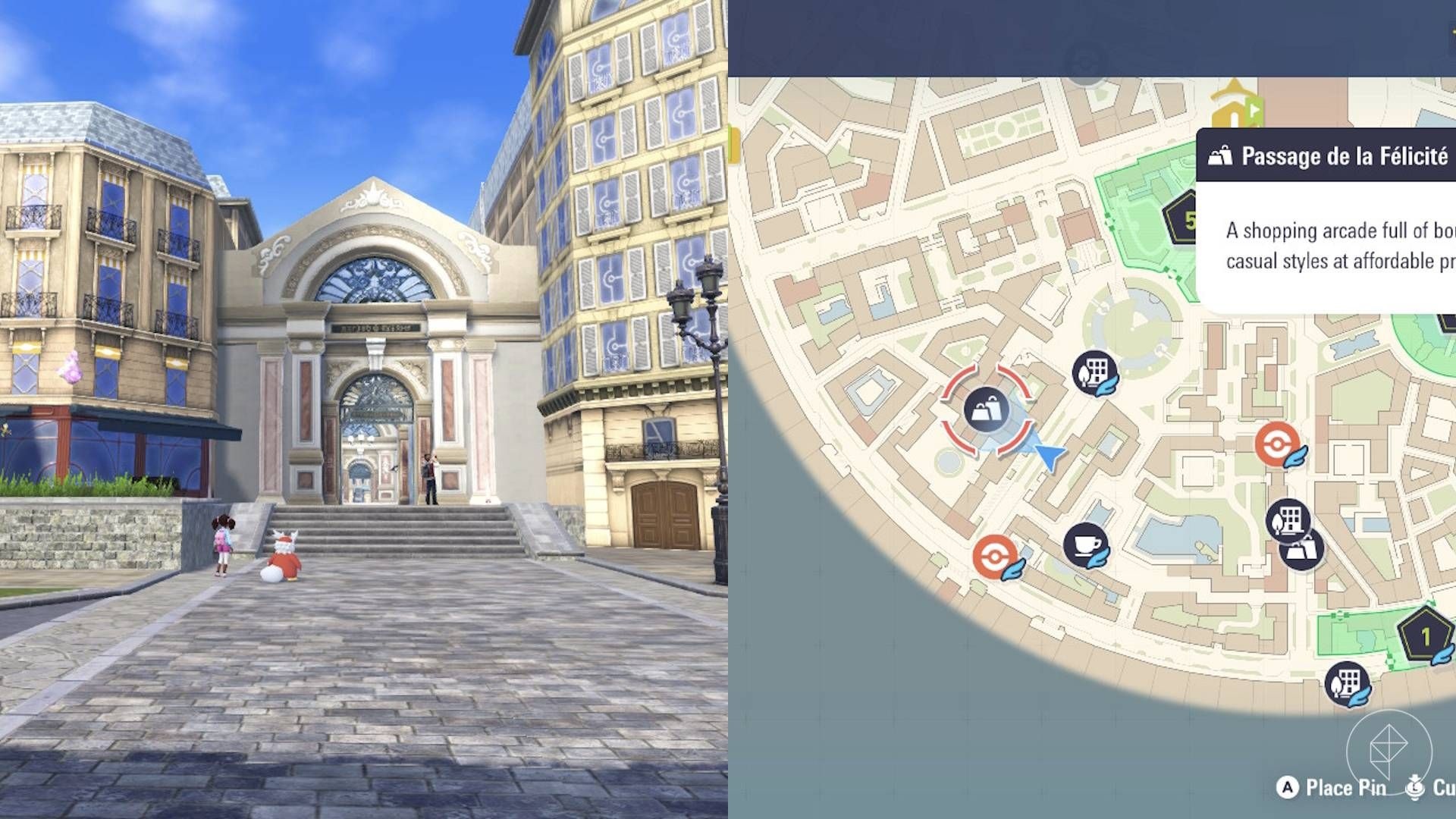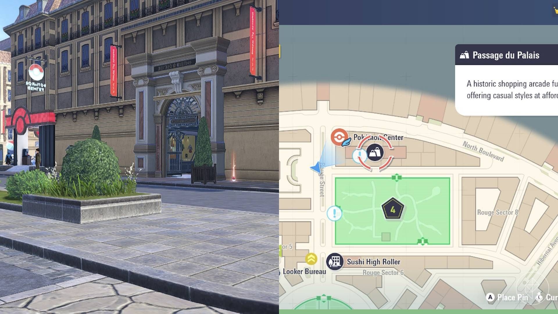 Passage du Palais znajduje się na północnej części miasta, tuż obok Rouge Pokemon Center i Wild Zone 4. To najlepsze miejsce na start, jeśli chcesz kupić coś taniego i ładnego.