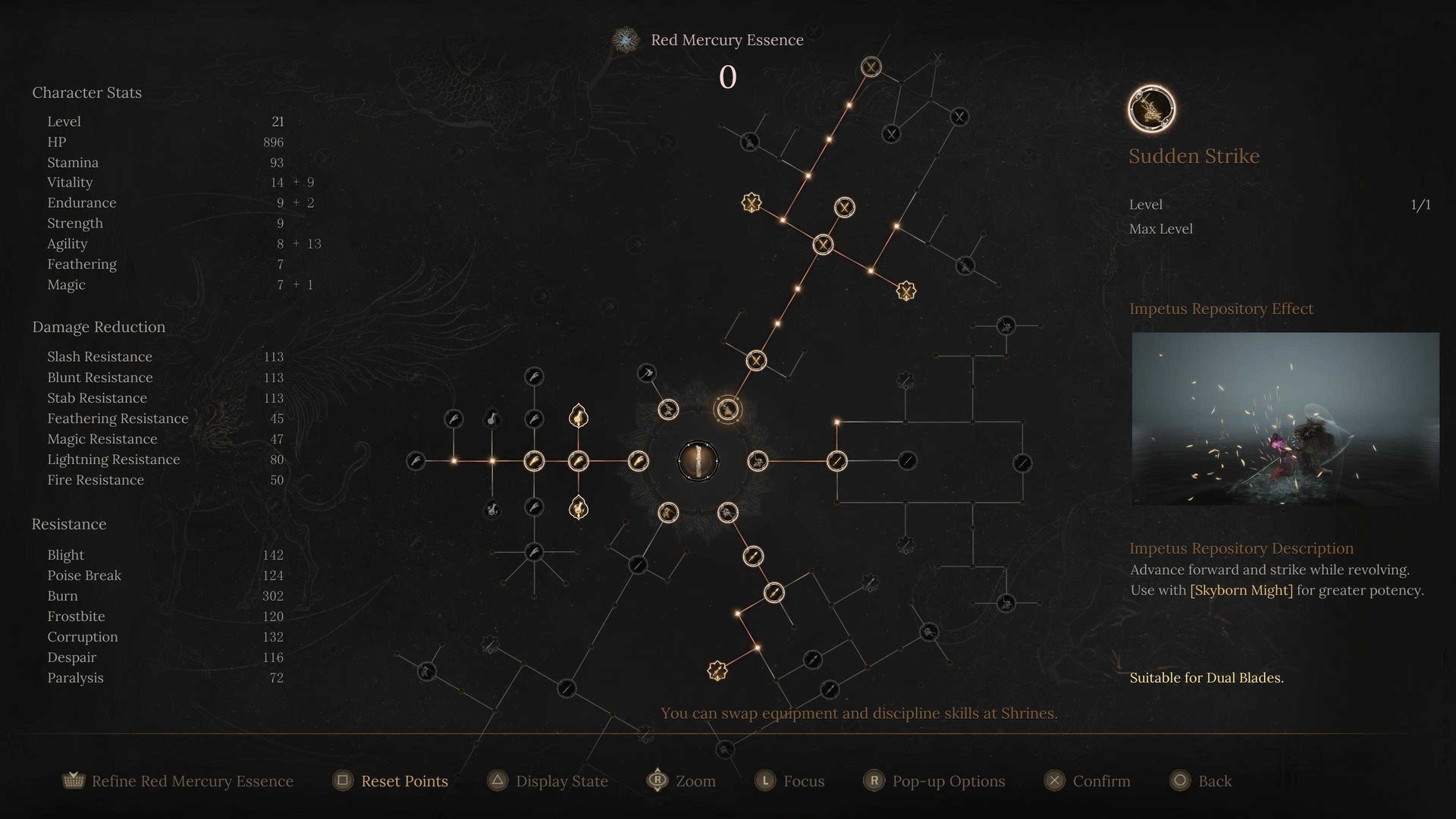 Skyborn Might to system magii i umiejętności, z którego korzysta Wuchang. Ładowanie tej energii następuje po idealnym unikaniu ataków przeciwnika, co idealnie pasuje do stylu walki opierającego się na zwinności. Możemy używać jej do rzucania czarów, jak ogniste kule czy tarcze ochronne, a także do aktywowania specjalnych ataków broni.