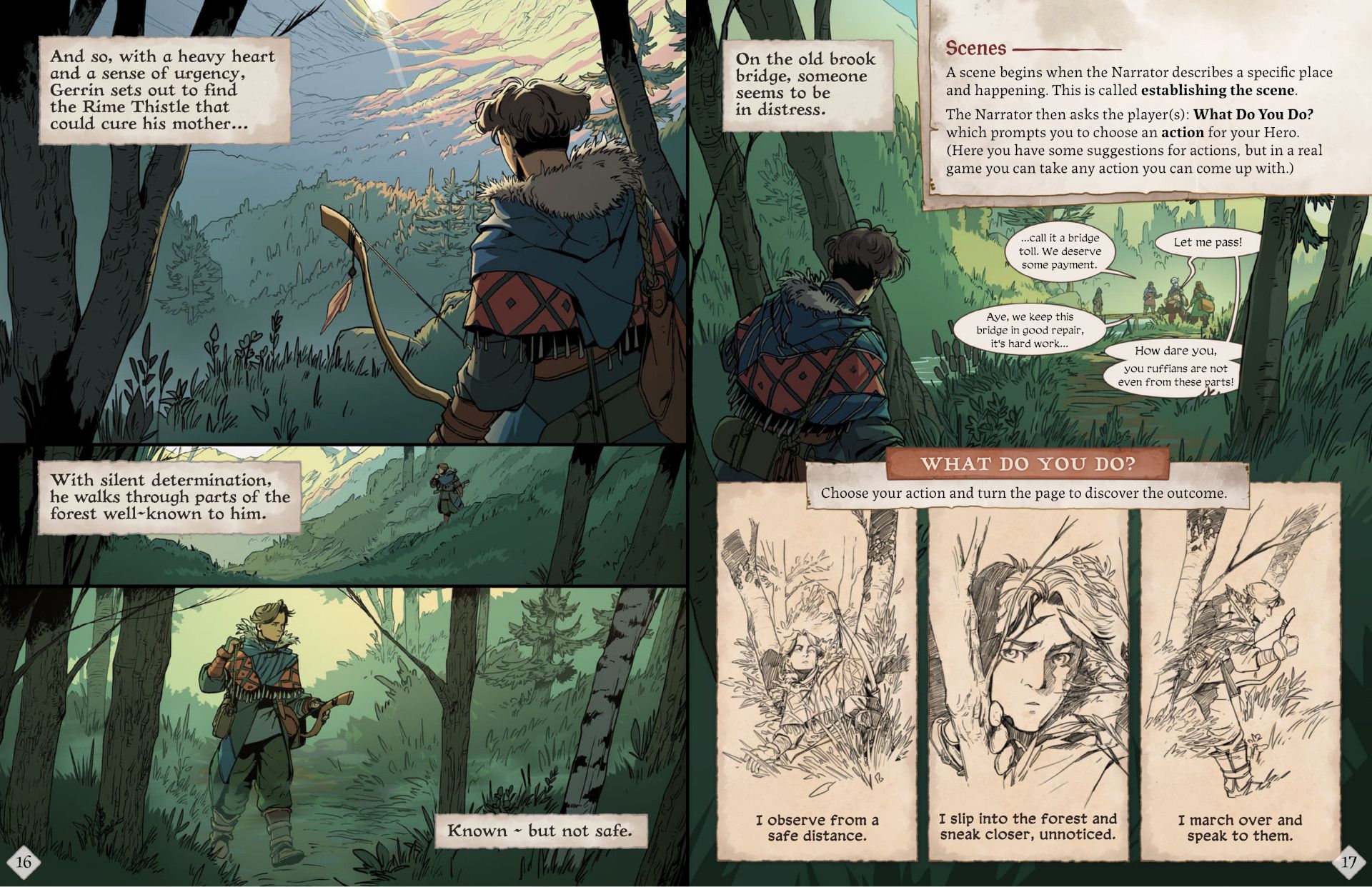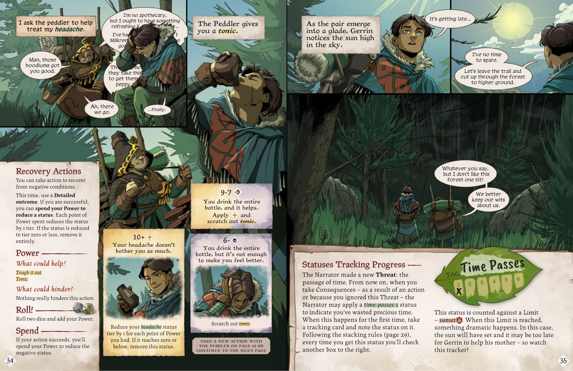 Amit Moshe jest autorem Legend in the Mist, a lead artist to Alejandra Pinal. Ilustracje wprowadzają atmosferę świata i pokazują mechaniki w działaniu, co ułatwia naukę. Krótko mówiąc: komiks uczy przez przykład.