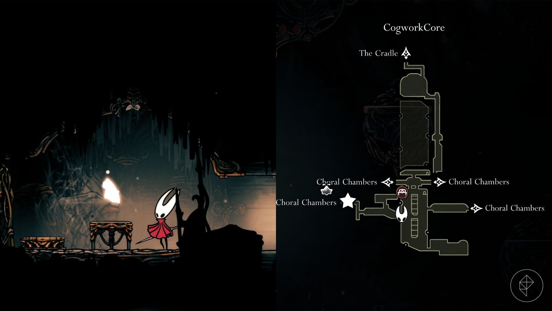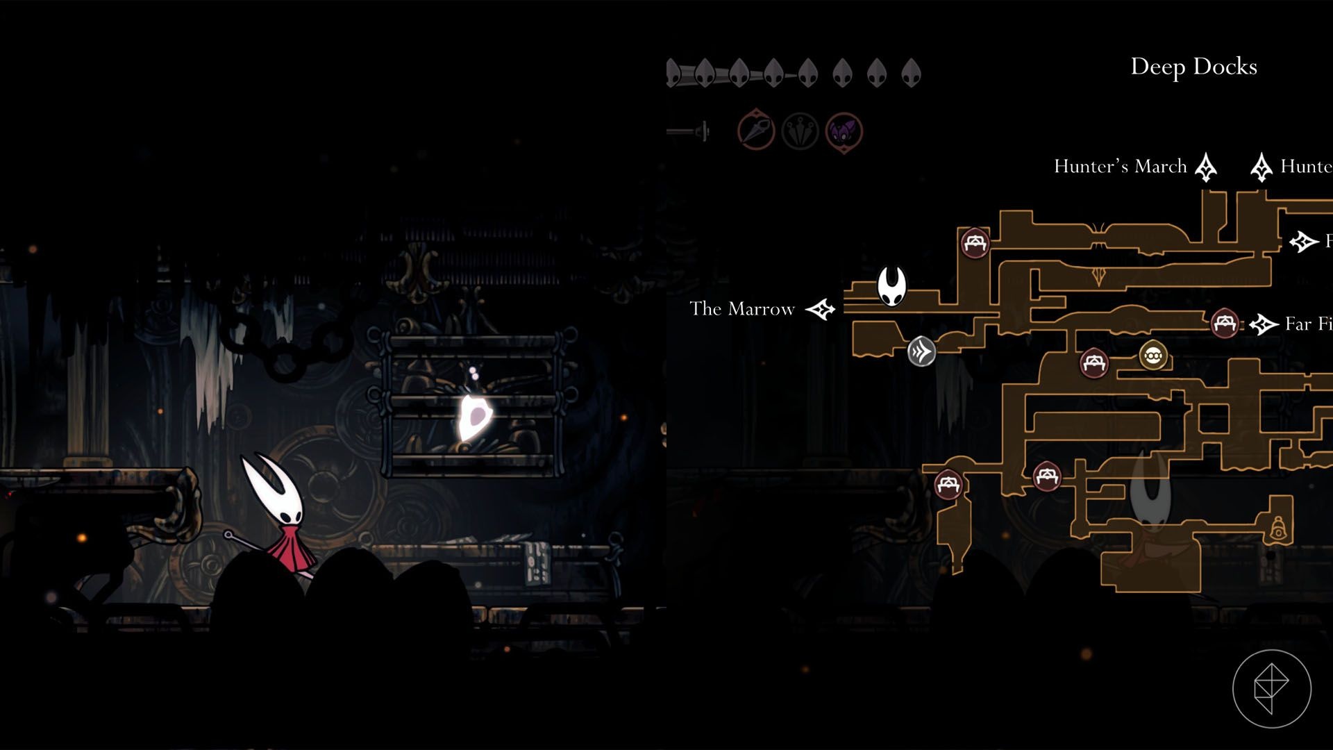 Aby go zdobyć, potrzebujesz umiejętności Swift Step (z Deep Docks). Następnie idź do lewego końca Mosshome, przeskocz szczelinę i przebiegnij długi korytarz. Wejdź w wyjście po lewej, ale zamiast otwierać drzwi — spadnij w dół i wybierz zniszczalną ścianę po prawej.